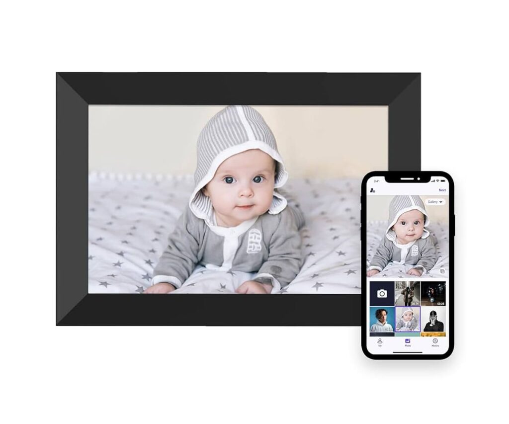 This frame boasts a 1280×800 HD IPS touchscreen, allowing you to share photos and videos remotely via an app or email, making it ideal for keeping loved ones connected.